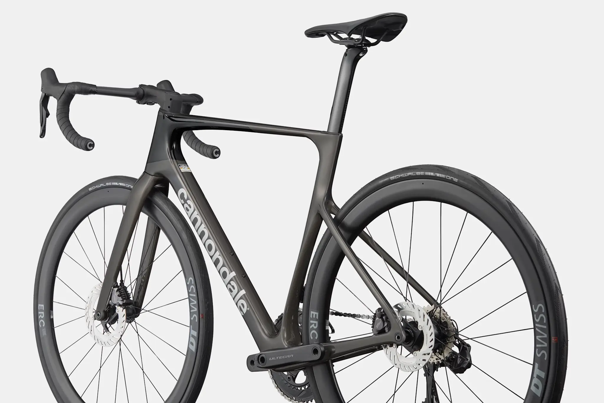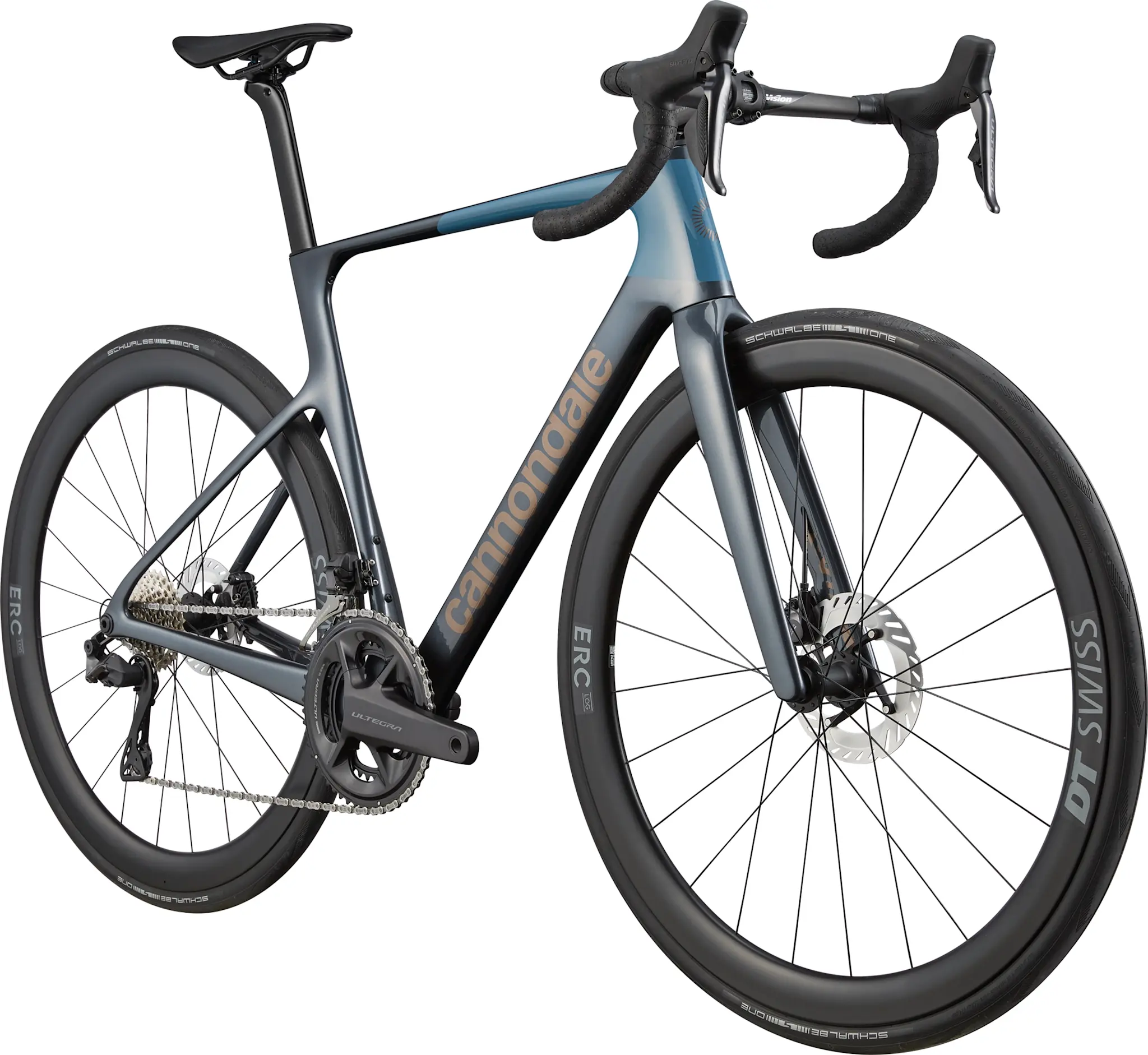 Vitesse optimisée pour la compétition à pleins gaz. Le cadre carbone 5e génération ultra-léger est équipé de roues carbone DT Swiss ERC LOG 45 montées sur des moyeux DT Swiss 370. Le système Shimano Ultegra Di2 garantit des changements de vitesse d’une précision « électronique ». Le cintre Vision Trimax Carbon Aero et la potence Cannondale C1 Conceal forment une partie avant abaissée et efficace, tandis que les freins à disque hydrauliques Ultegra restent performants et fiables lorsque le rythme s’accélère et que les virages se succèdent à vive allure. Conçu pour maintenir la cadence.