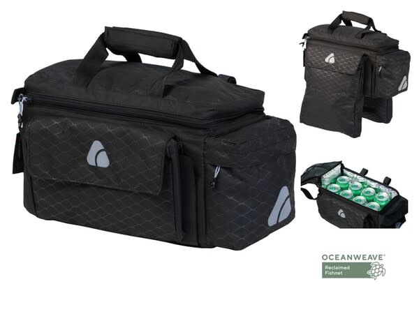 Un coffre avec une caractéristique en prime : les compartiments latéraux peuvent s’agrandir pour transporter encore plus de matériel Le compartiment principal est isolé (comme une glacière souple), alors il est idéal pour transporter des boissons fraîches au parc ou un pain chaud depuis la boulangerie. De plus, le matériau Oceanweave est fabriqué à partir de filets de pêche récupérés et recyclés pour aider à protéger les océans et la faune marine du monde entier.
